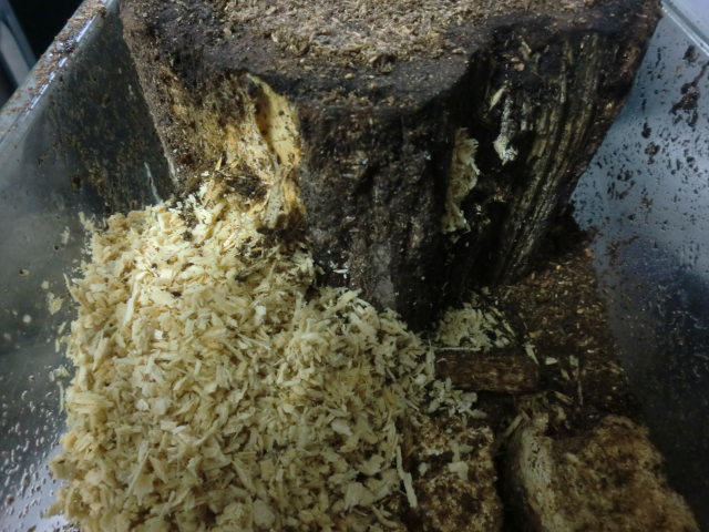 剥いだ表面にフェロールマットを塗り付けます。(これは産卵促進マットでおまじないのようなものです)