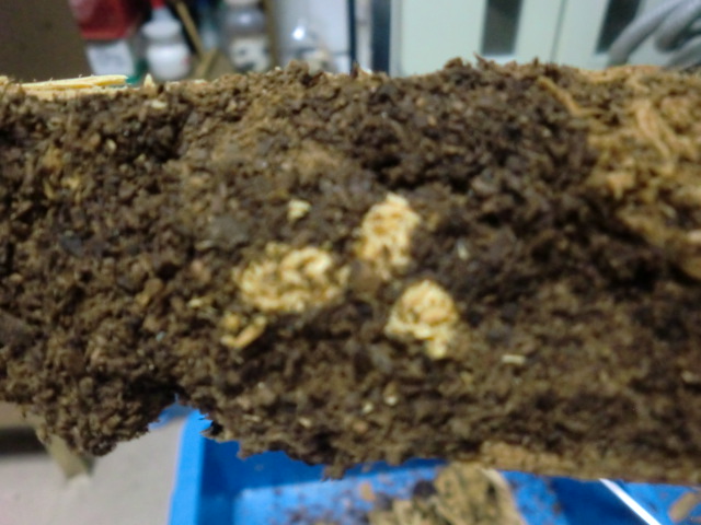 それと、産卵木の水分量が多かったのか? 腐って黒くなった卵も散見されました。 また、小さな卵も見えたので、産卵もだらだら生むのかな? など考えながらの割り出しでした。