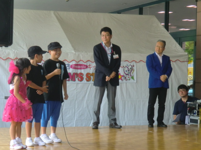 同友店会会長 イオン時津店店長 の挨拶後の、 出演者代表挨拶です。 兄弟3人で実施! 勿論! お兄ちゃんから! 上手でした!会場からのたくさんの拍手がありました。