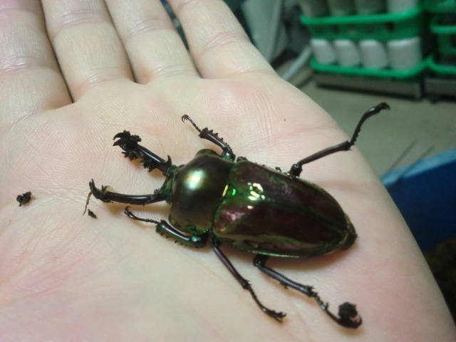 ここで! パットみると♂みたいに見えるのですが? 胸部中央に点刻があります。 ニジイロクワガタの♀の見分け方です!! 参考に!