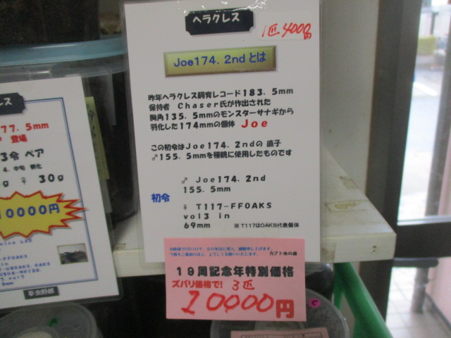 ※Joe174.2ndとは、昨年ヘラクレス飼育レコード183.5mm保持者 Chaser氏が作出された胸角135.5mmのモンスターサナギから羽化した174mmの個体