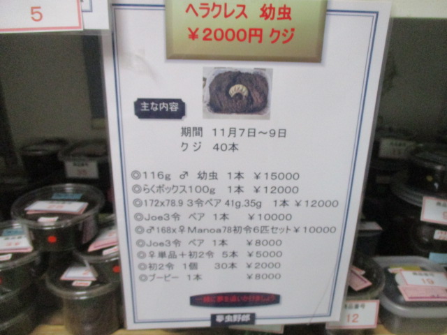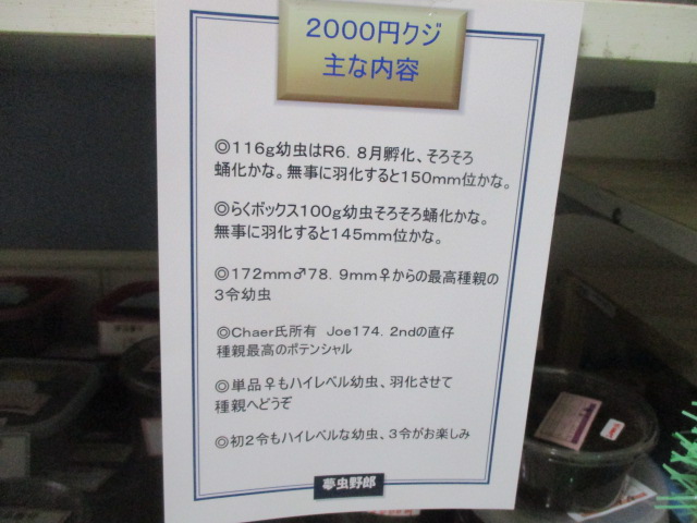 内容:15000円~2000円の幼虫が当たります。