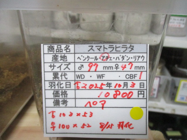 4⃣スマトラヒラタクワガタ 産地:アチェ 累代:CBF1 羽化日:2025年10月3日~ 大型血統