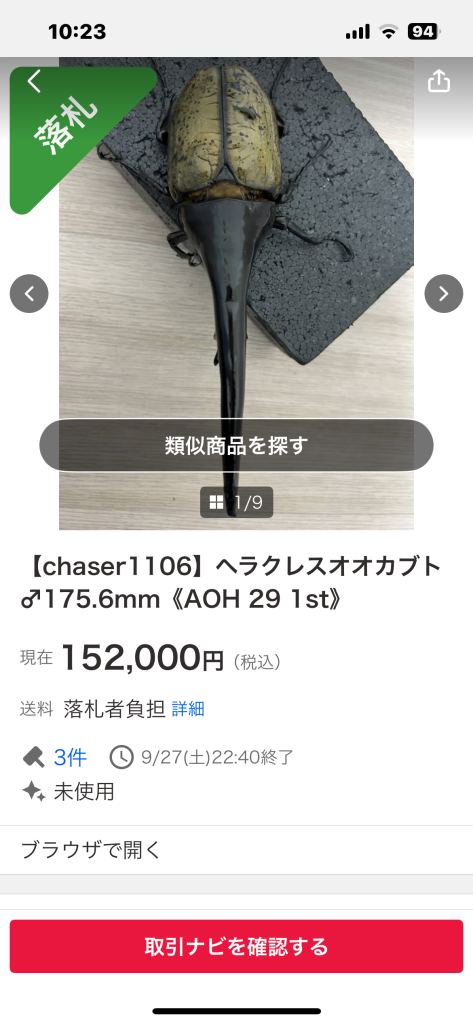 私がヤフオクで落とした、飼育レコード血統♂です!