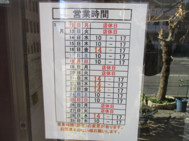 ①1月営業時間変更のお知らせ!
