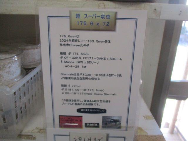 超スーパー幼虫残り3匹となりました。興味のある方如何でしょうか?