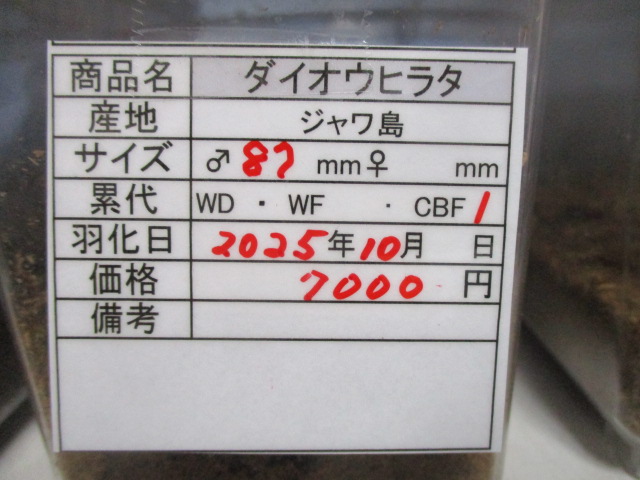 1⃣ダイオウヒラタクワガタ 産地:ジャワ島 累代:CBF1 羽化日:2025年10月